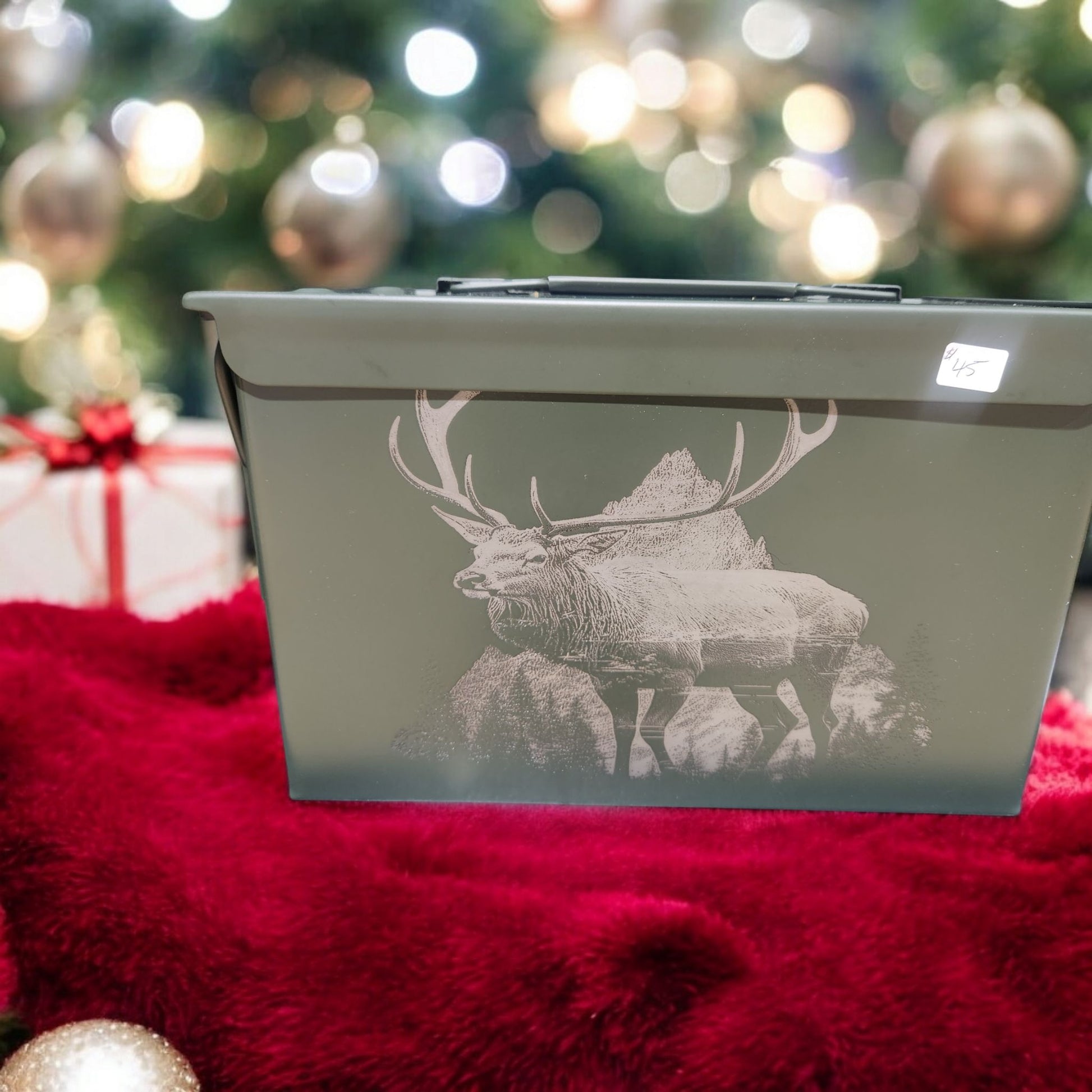 Impress your friends and family with this Mountain Lion laser etched .50 Cal ammo can. Not only is it water resistant, but the design features a majestic Rocky Mountain elk on one side and Mountain Lion on the other side. Perfect for outdoor adventures and gun enthusiasts.